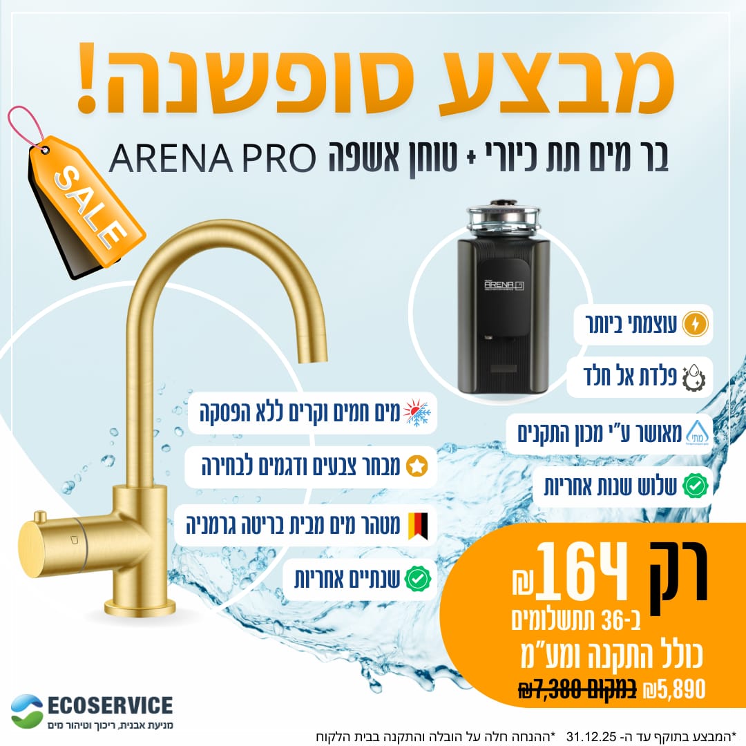 מבצע סוף שנה מטורף מערכת תת-כיורית למים חמים וקרים וטוחן אשפה ארנה פרו– פתרון מושלם למטבח!